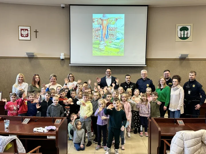 Kolejną częścią wizyty było zapoznanie z pracą służb porządku i urzędów obsługujących sprawy mieszkańców. Komendant Miejski Artur Zięba przybliżył dzieciom pracę Straży Miejskiej, a funkcjonariusze zaprezentowali wykorzystywany sprzęt oraz ekwipunek ratunkowy – to element, który zawsze przyciąga uwagę najmłodszych. Z kolei w Urzędzie Stanu Cywilnego kierownik Agnieszka Zielińska opowiedziała o zadaniach tej jednostki, od rejestracji urodzeń, przez organizację ślubów, aż po inne sprawy związane z dokumentami mieszkańców.
