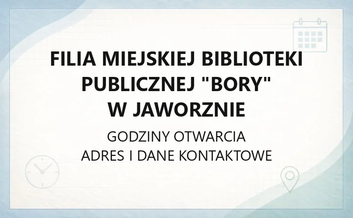 - Aktualne godziny otwarcia i numery kontaktowe dostępne są na oficjalnej stronie Miejskiej Biblioteki Publicznej w Jaworznie.
