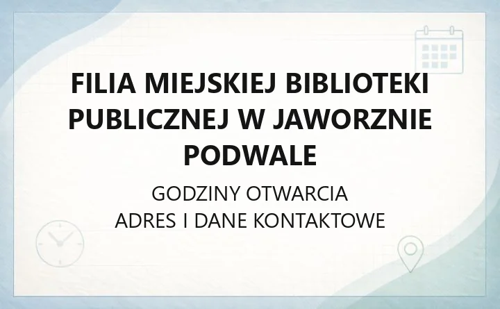 Materiał źródłowy stanowiła strona mbp.jaworzno.pl. Dane mogą się zmieniać; pamiętaj, warto sprawdzić je na oficjalnej stronie.